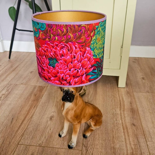 Deze lamp draait niet om subtiliteit, maar om persoonlijkheid. Gemaakt van een vintage Jema Holland beeld krijgt deze boxer een nieuw leven in combinatie met een opvallende kap vol kleur en textuur.